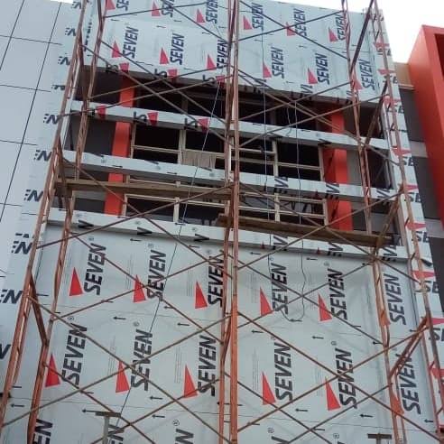 5. Setelah terpasang semua baru kita lepas kertas penutup acp sehingga terlihat warna asli dari acp tersebut.